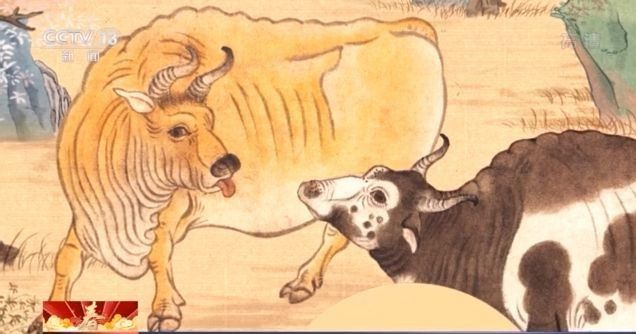 故宫博物院书画部研究馆员 聂卉:就像我们说的画龙也要点睛,他在这个部分,用特别浓重的墨,一下显得很突出,也就让这几个动物更有神采。它是用线条来塑造形象,线条转折之间把牛的筋骨这些结构的变化,都很好的体现出来了。代表了那个时期的绘画风格和绘画的技术的成熟。