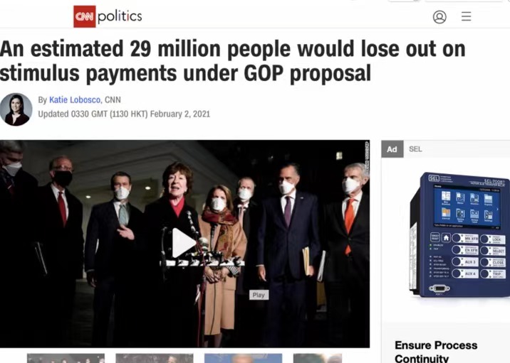 △CNN称,根据共和党的提案,预计约有2900万美国人将失去刺激支票
