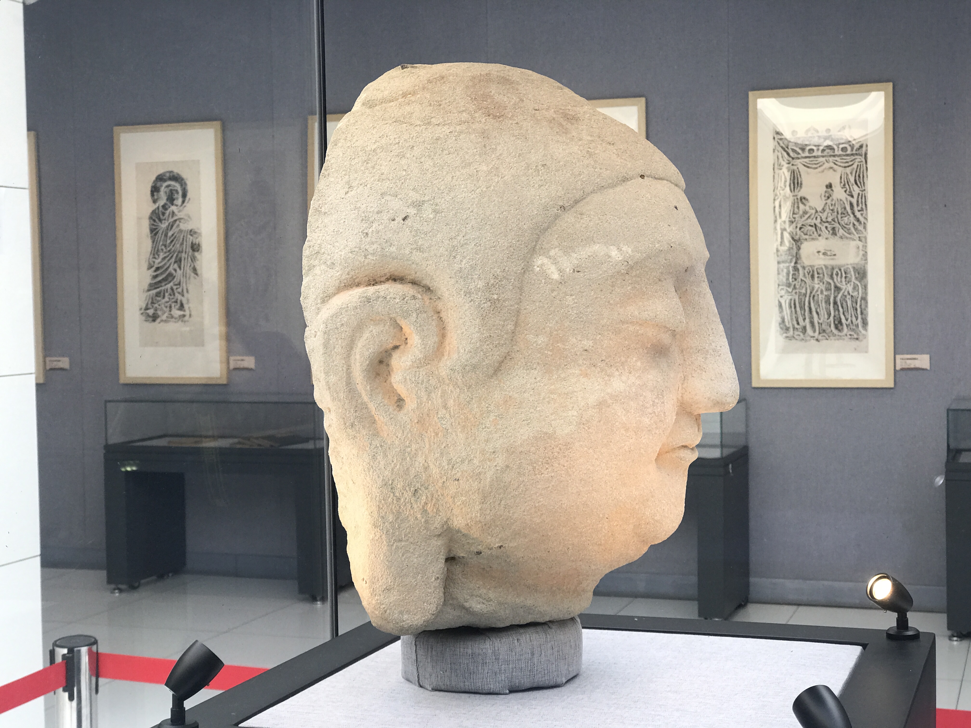 2月12日,在北京鲁迅博物馆展出的天龙山石窟佛首。新华社记者 范思翔 摄