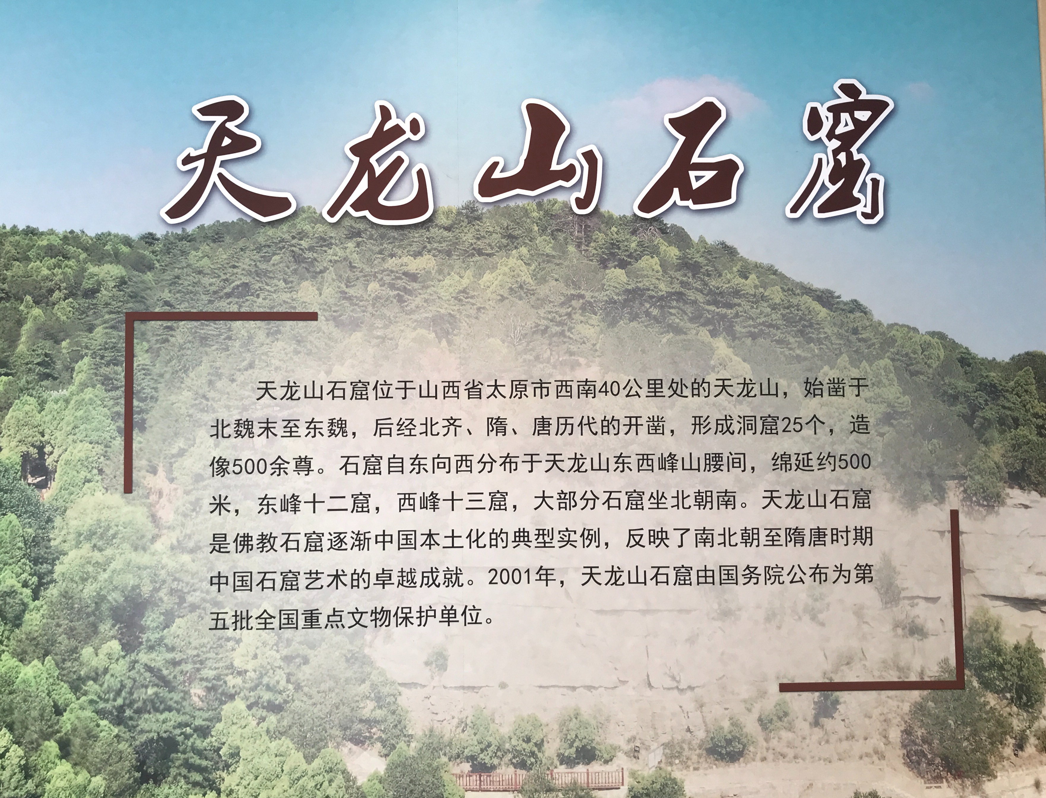 据介绍,天龙山石窟位于山西省太原市西南40公里处的天龙山,始凿于北魏末至东魏,后经北齐、隋、唐历代的开凿,形成洞窟25个,造像500余尊。2001年,天龙山石窟由国务院公布为第五批全国重点文物保护单位。