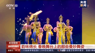 2008年春晚,古典舞《飞天》让人眼前一亮,舞蹈的创作灵感来源于敦煌莫高窟的飞天壁画,七名身着精美服饰的舞蹈演员,巧妙地将右腿固定在舞台上,展现出与舞台或平行或垂直的优美舞姿,她们飘飘欲仙,轻盈灵动,演“活”了敦煌壁画中的飞天形象。