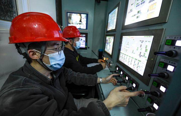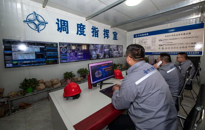 项目负责人在调度指挥室进行监控指挥。(新华社记者冯开华摄)
