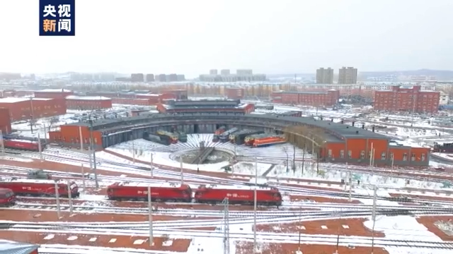 茫茫雪色中,形式各样的机车围绕在扇子形状的库房前,一个如同“猫眼瞳孔”般不时横竖旋转的圆盘,格外引人注意。这就是转车盘,是机车入库时唯一的通道。