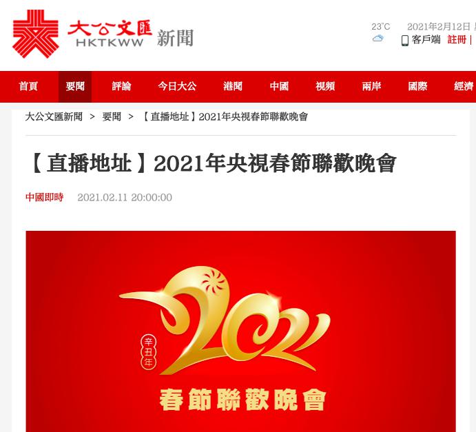 2月11日除夕夜,香港多家主流媒体通过电视、网络等直播或转播了中央广播电视总台春节联欢晚会,为香港市民带来一场宏大的视听盛宴。