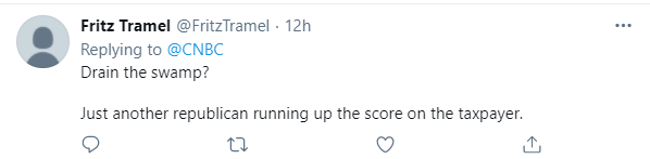 有网民称:不是号称要去华盛顿抽干腐败的沼泽吗?不过是另一个共和党人在跑马圈地。↓