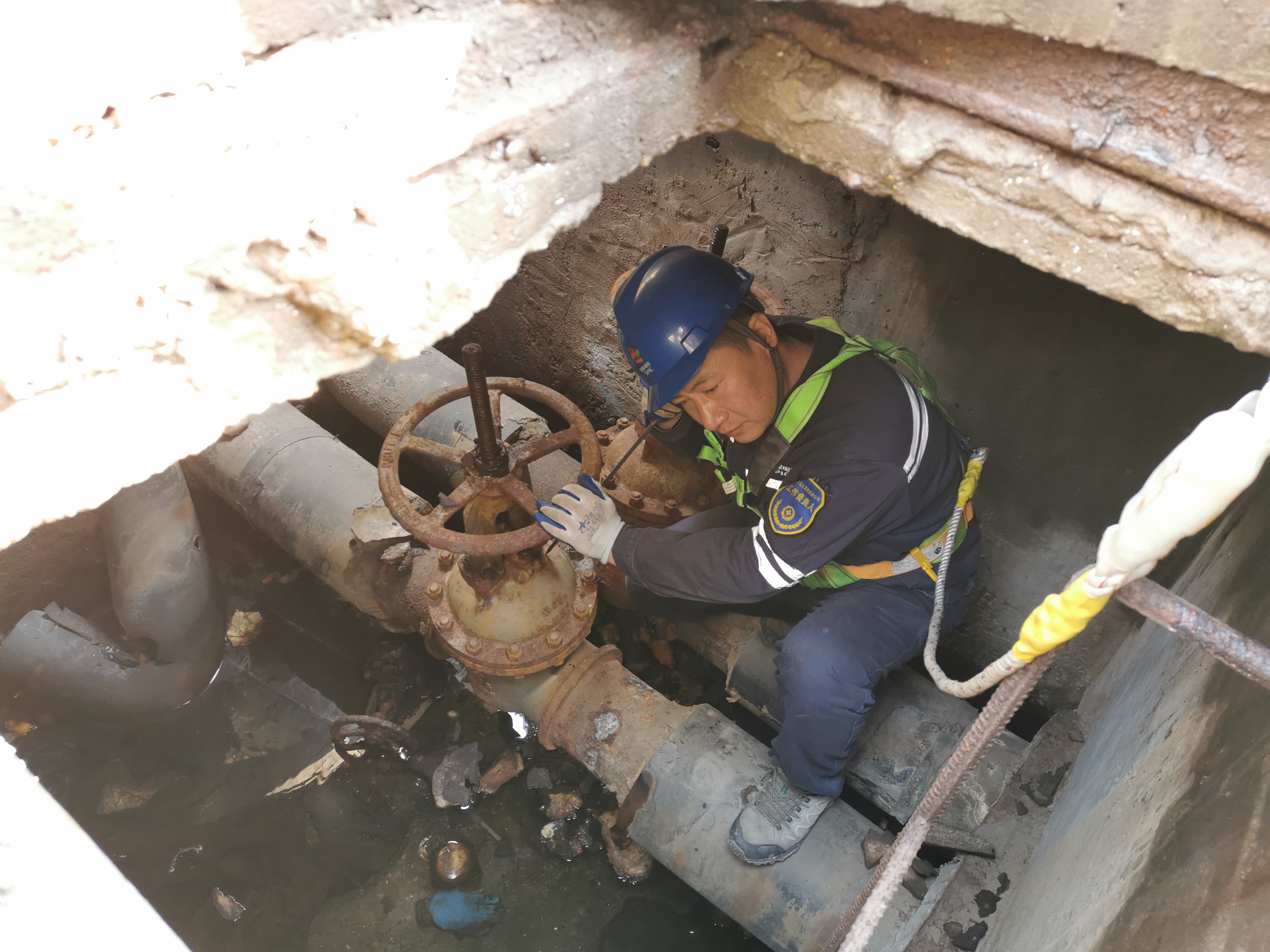 三四平方米的井下空间,张春明低头哈腰蹲坐在管道上,排除渗漏隐患后,他没有急于“升井”,而是给阀门涂上一些类似润滑脂的材料,这是他的习惯,“算是日常保养,预防关键时候阀门锈死,影响维修。”
