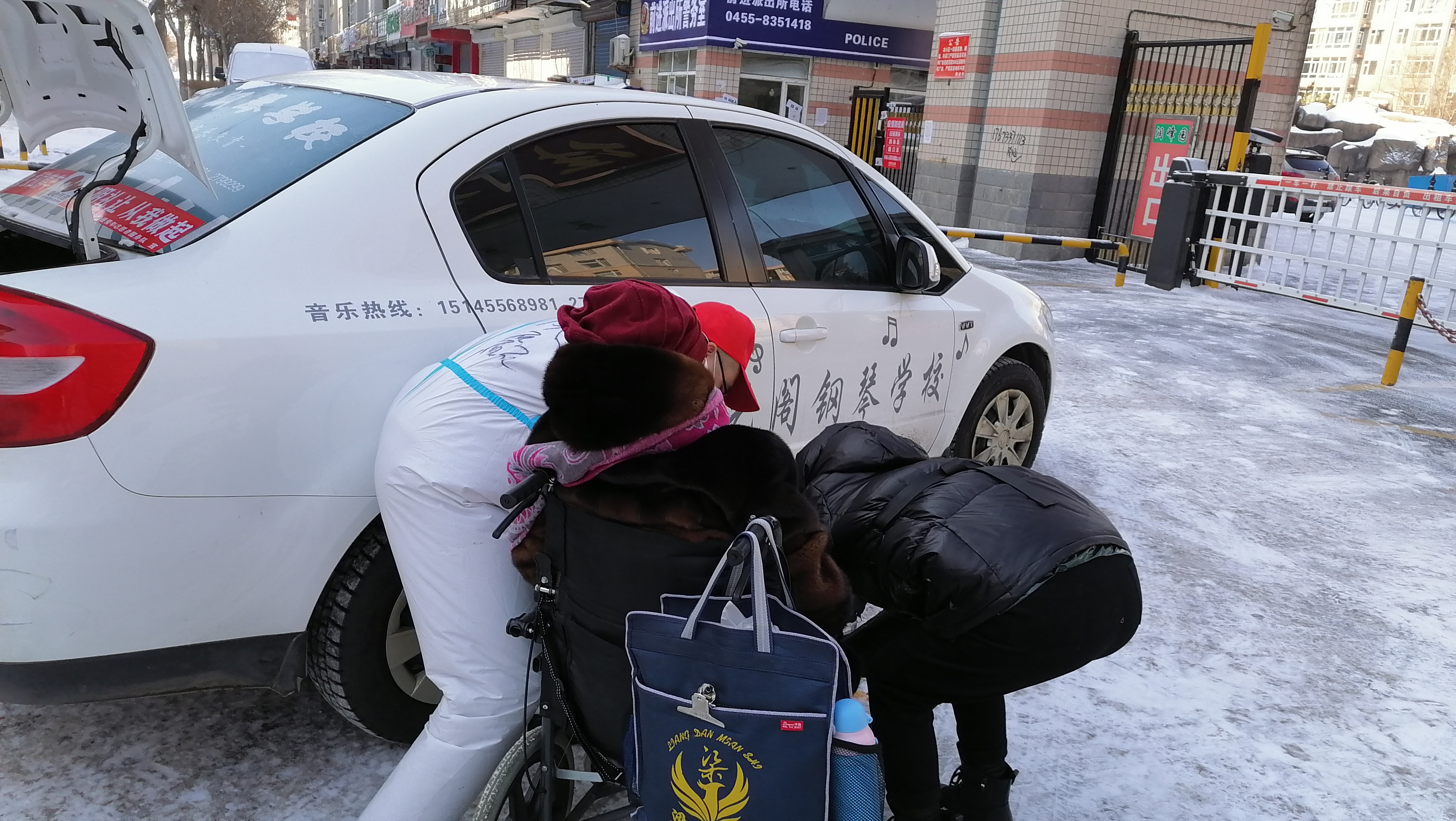 绥化市爱心传递志愿者服务队公益车队的志愿者在帮助市民。受访者供图