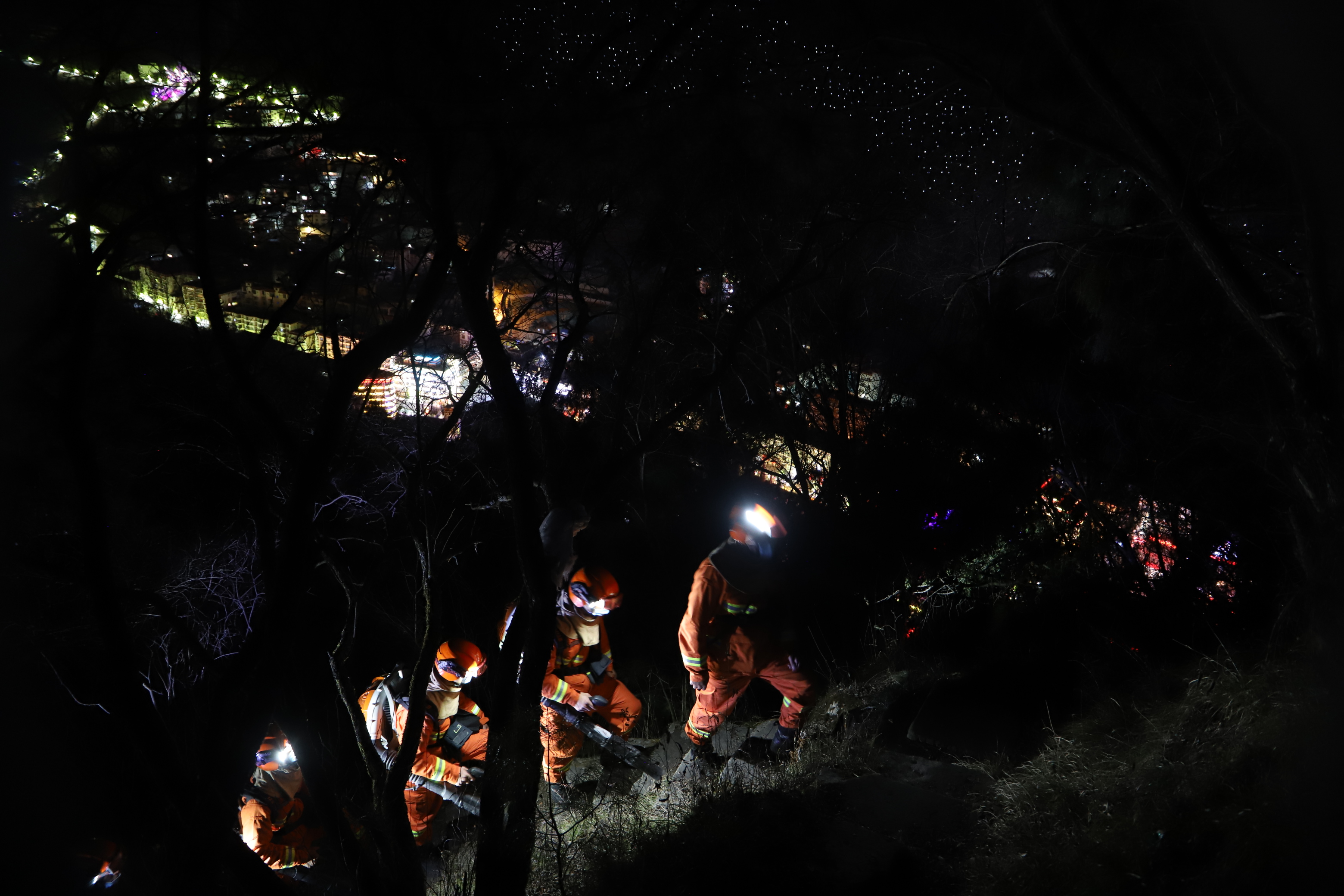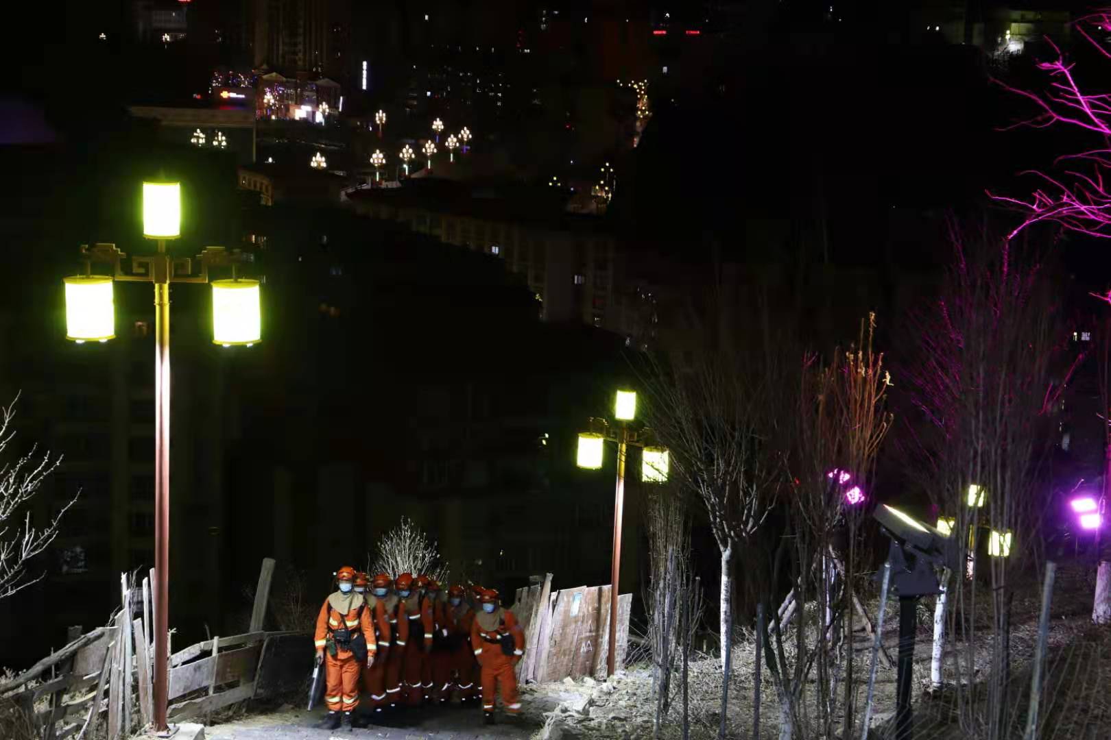 新华社成都2月12日电(记者张海磊)除夕夜,位于四川省甘孜藏族自治州康定市的跑马山上,正在巡护的森林消防员用头灯在茫茫黑夜里划出一道光。他们正背着重达20公斤的灭火机具艰难穿行。