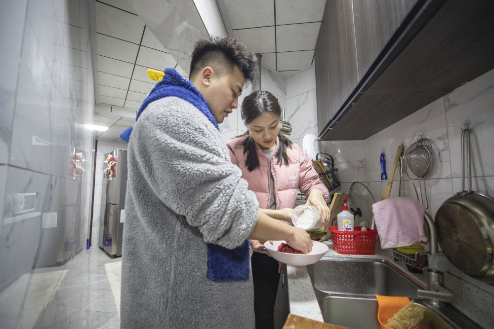 今年除夕,他们又分别值乘不同的动车组列车,不能团圆了。平时不擅长做饭的张家辉在除夕前休息的最后一天为妻子做了一顿“年夜饭”。