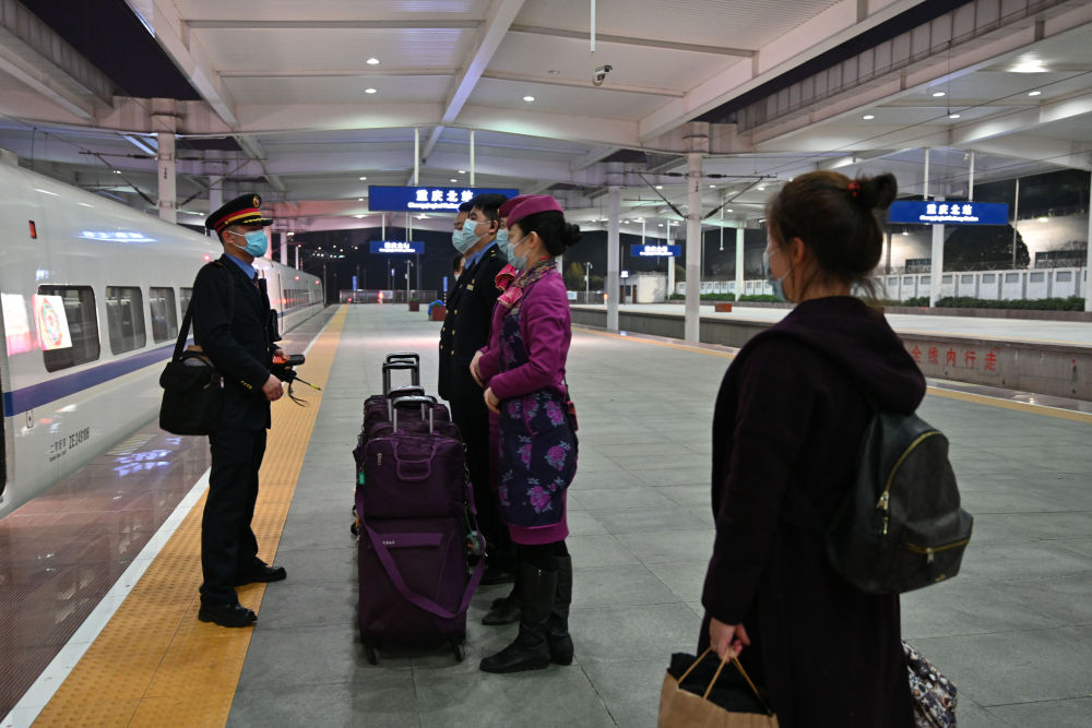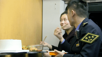 列车停靠重庆北站时间只有23分钟,除去迎接旅客15分钟、旅客下车3分钟,留给她吃饭的时间只剩下5分钟。但这5分钟的“年夜饭”却盛满了这对铁路夫妻满满的爱。