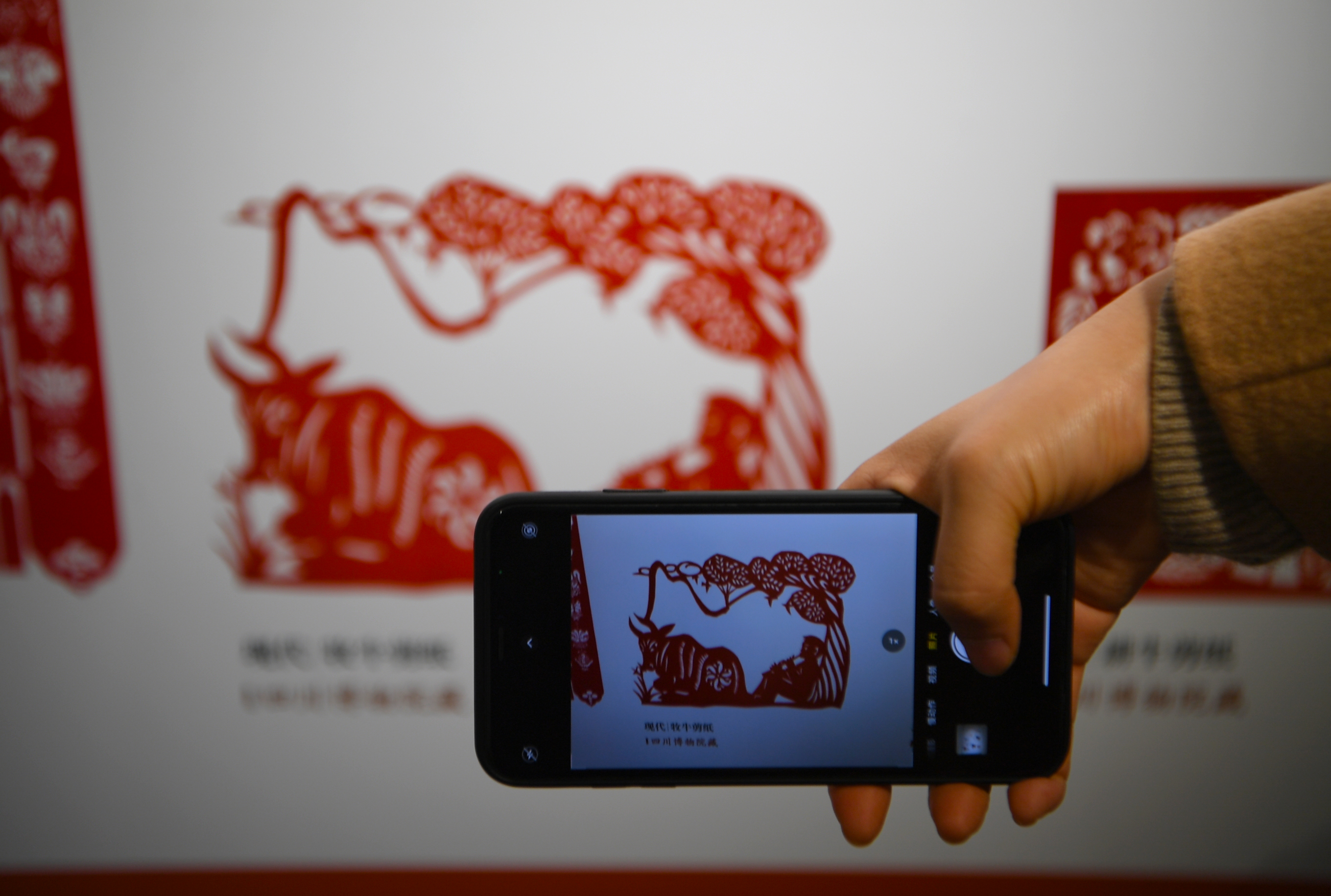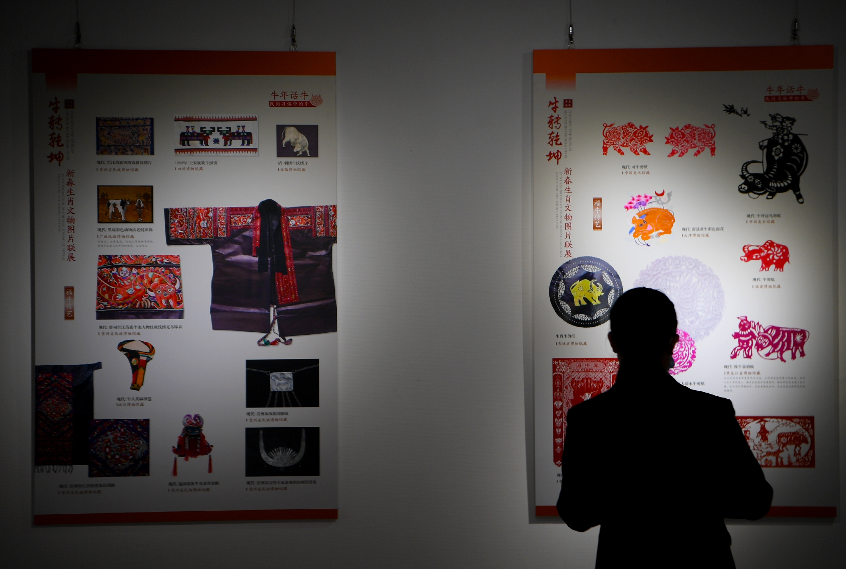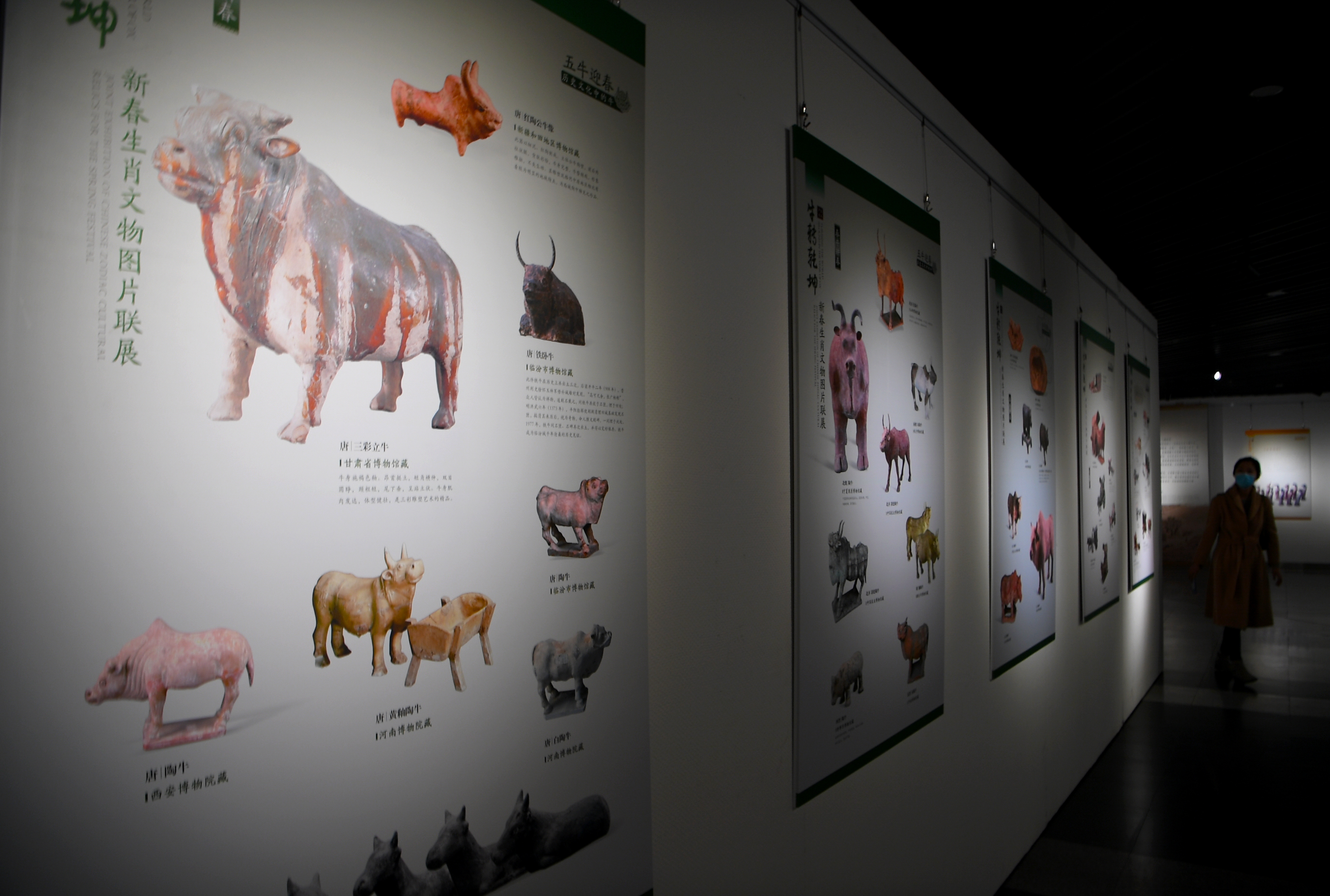 这是辛丑(牛年)新春生肖文物图片联展现场。(新华社记者郝源摄)