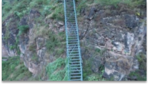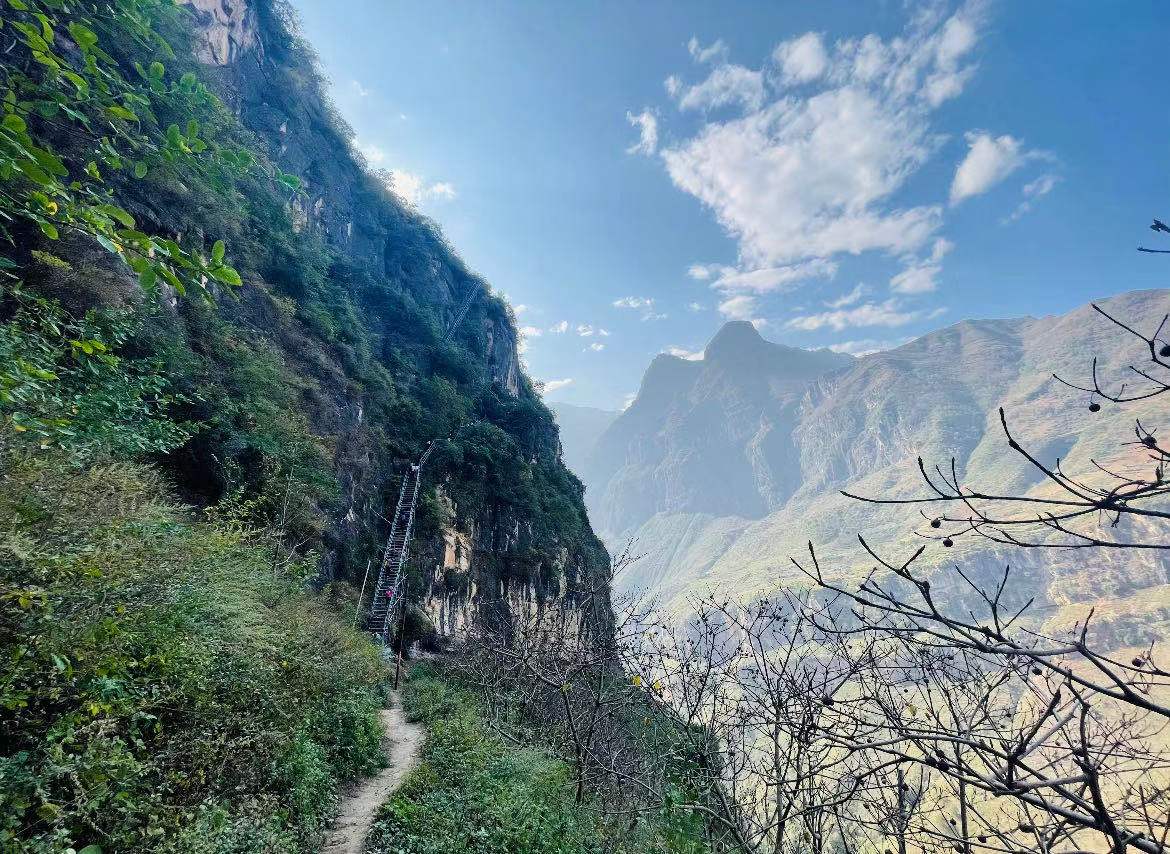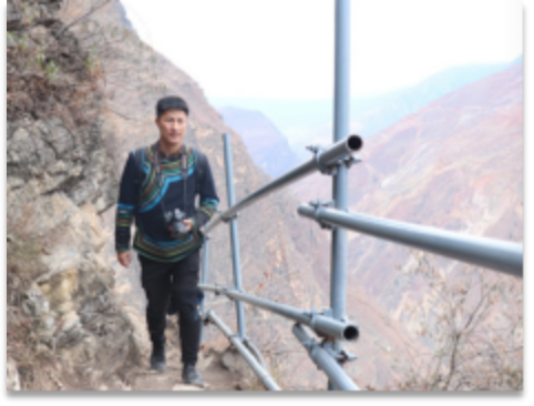村民要攀爬陡峭的悬崖藤梯才能下山