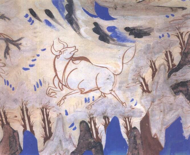 “只用寥寥数笔,古代画工就勾勒出山林逐猎的紧张气氛和野牛的雄健姿态。”敦煌研究院研究馆员杨秀清说。一些西方研究者认为,这幅壁画与19世纪印象派绘画有异曲同工之处,不苛求细部,重在营造整体氛围。