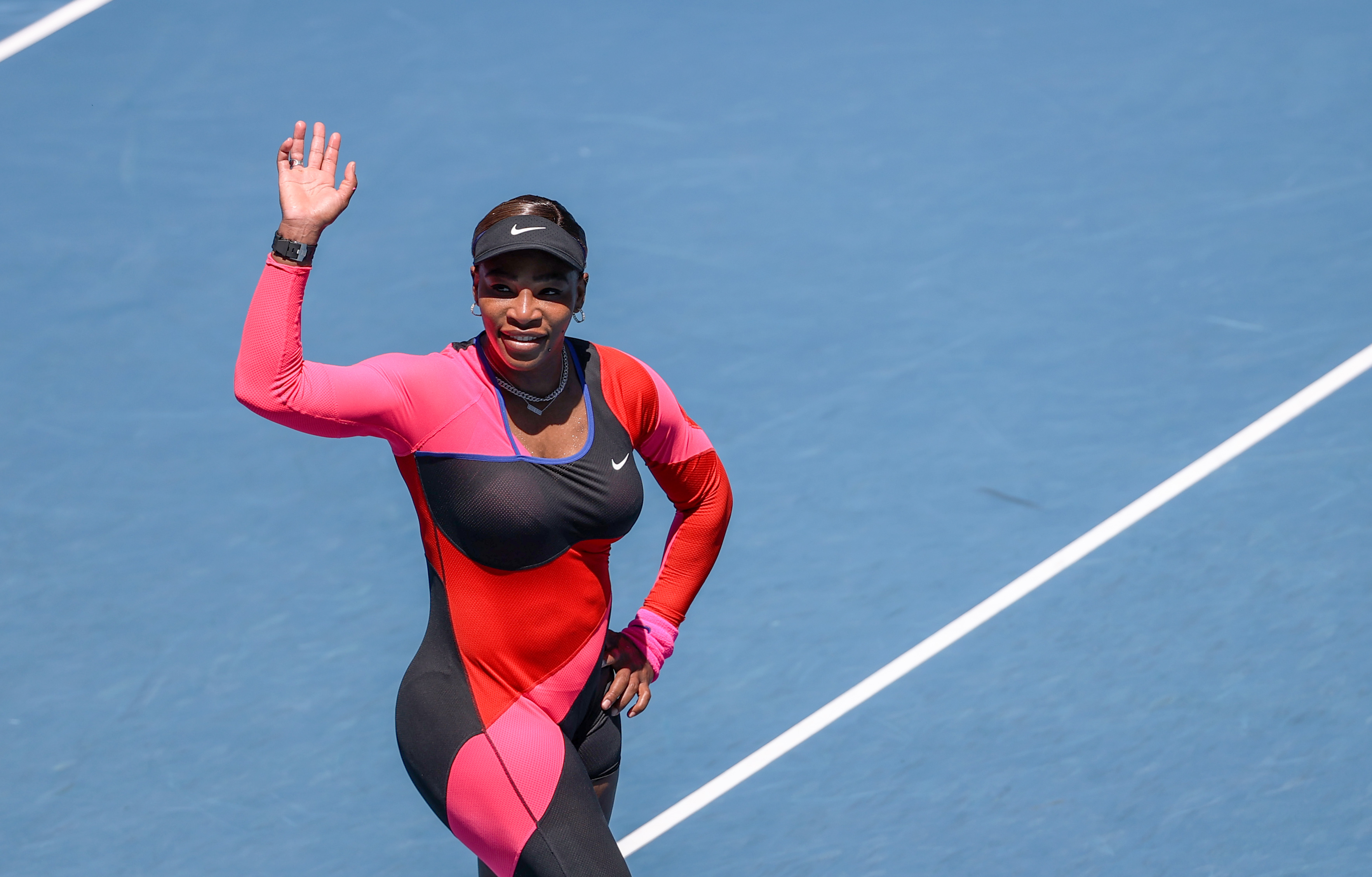 2月10日,在墨尔本进行的澳大利亚网球公开赛女单第二轮比赛中,美国选手塞雷娜·威廉姆斯(小威)以2比0战胜塞尔维亚选手斯托亚诺维奇,晋级下一轮。图为小威在比赛后庆祝。(新华社记者白雪飞摄)