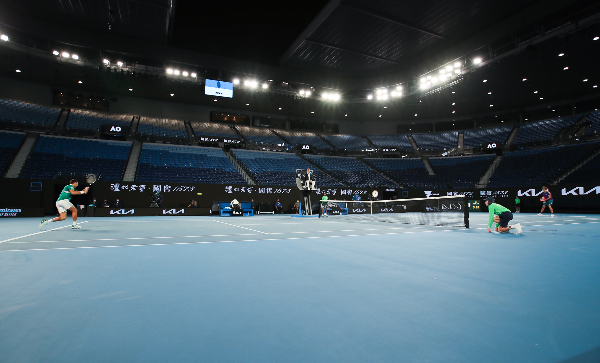 往年在1月中旬开赛的澳网今年则推迟至2月举行。超过1000名球员、教练员和官员1月抵达墨尔本后在酒店隔离14天。