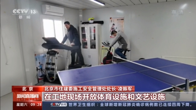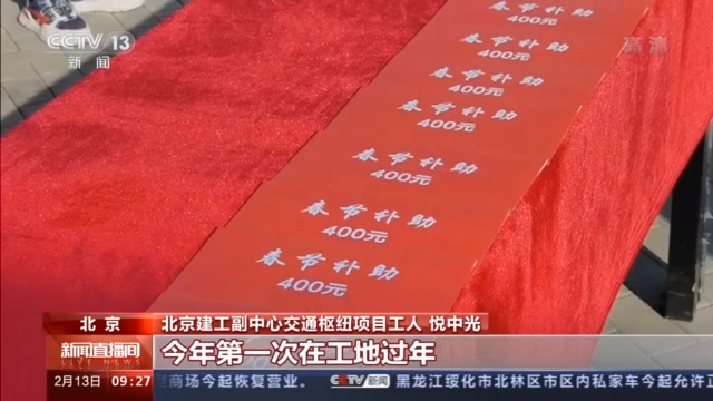 北京市住建委施工安全管理处处长 凌振军:除此以外,我们要求在京的(建筑)企业按照节日标准在企业内部给施工的一线工人要发放节日补助。在工地现场开放体育设施和文艺设施,要求企业提高伙食标准,组织开展多种形式的拜年活动,确保工人在北京过一个安心的、暖心的春节。(总台央视记者 张景 于晶晶)