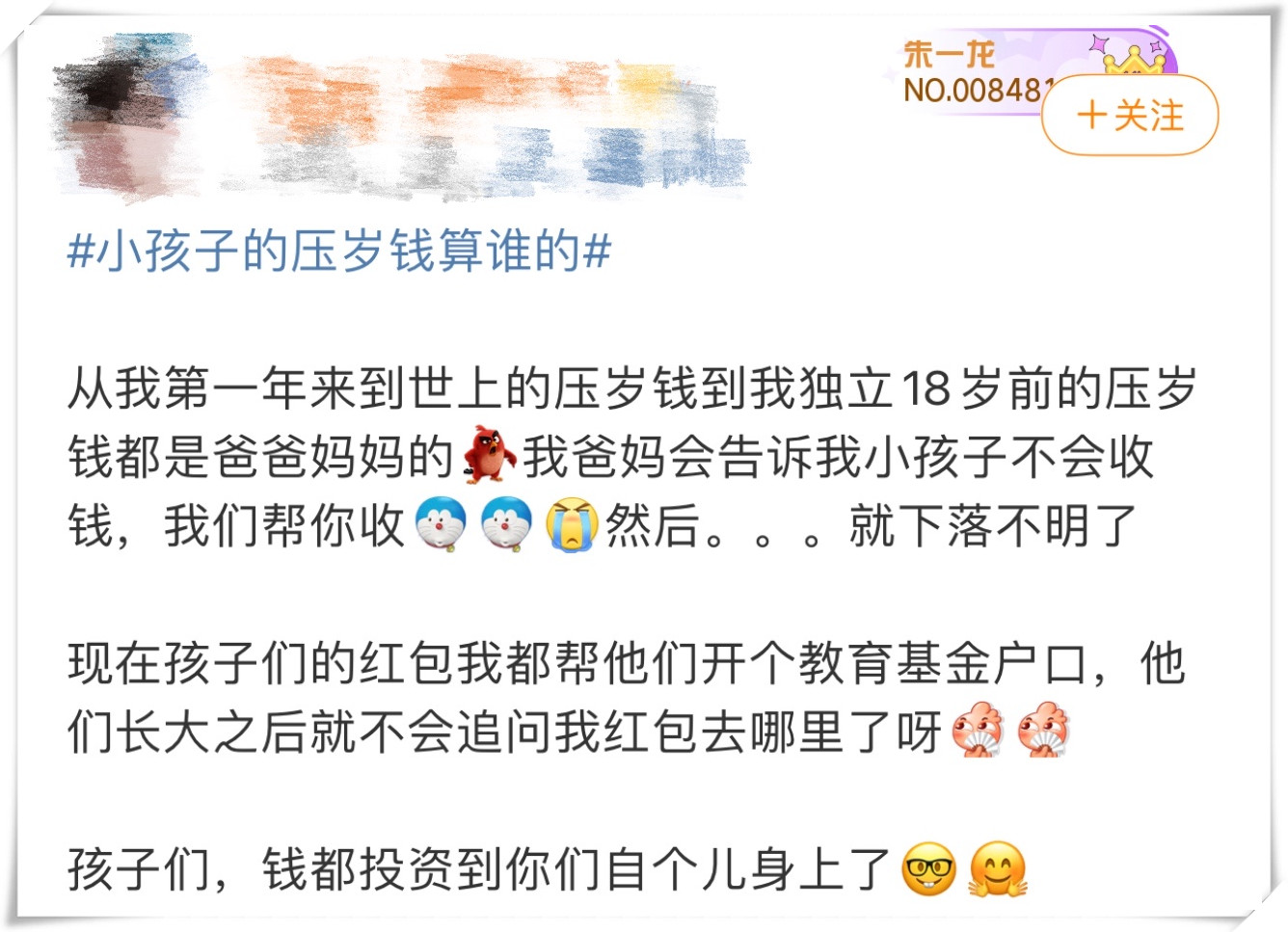 也有些网友说,孩子的压岁钱都是父母帮忙保管,从银行开户到长大以后买车......这些钱都好好地存着。