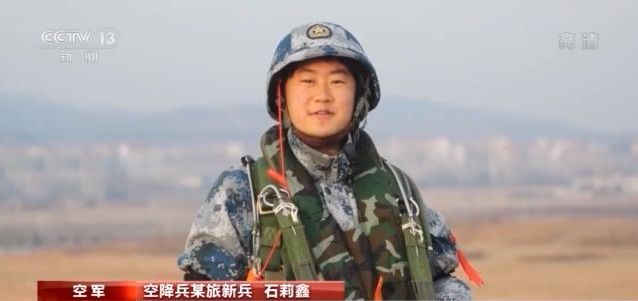 空降兵某旅新兵 石莉鑫:爸爸妈妈,我已经安全着陆了,请你们放心,你们的女儿很勇敢,我现在已经成为一名真正的空降女兵啦。