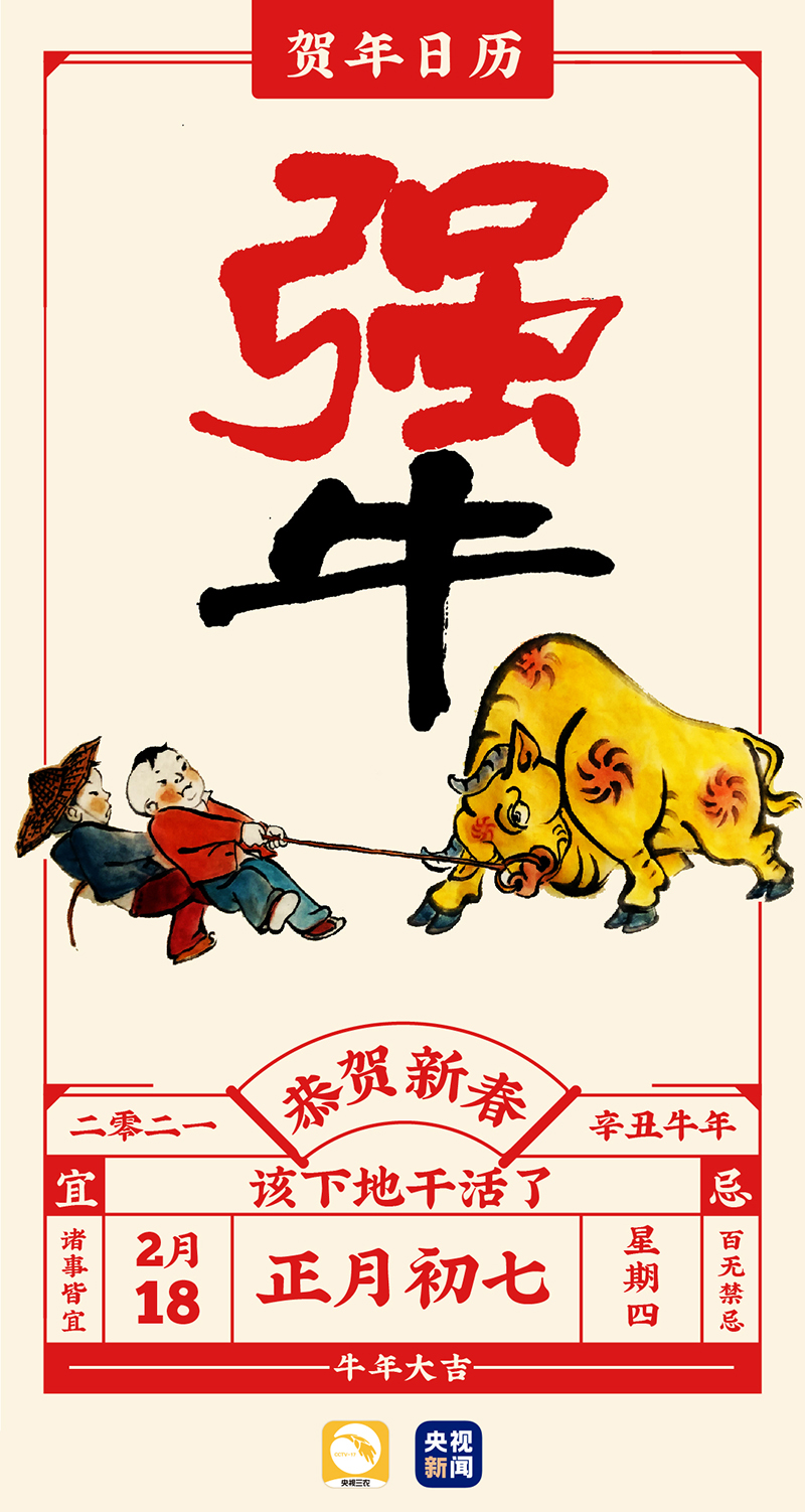 《犟牛生肖》,以犟牛的“犟”字的“强”“牛”组合,期望“牛”年你更“强”。