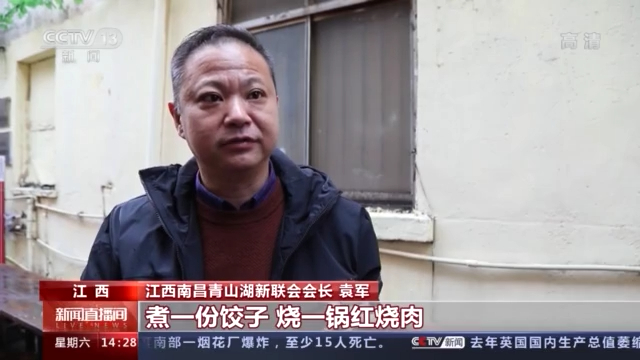 江西南昌青山湖新联会会长 袁军:我们今天主要是给爱心厨房,还有就是在医院没有回家的这个家属,做一锅饺子,烧一顿红烧肉,也就是让他们在外面,感受一下在家里过年的气氛。