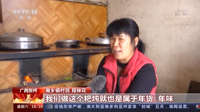 春节期间,广西贺州南乡镇的群众都会做一种当地特有的小吃——粑炖,让在外的孩子们回到家里重温家乡的味道。