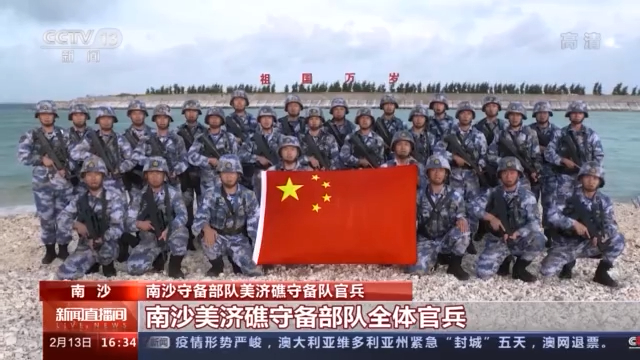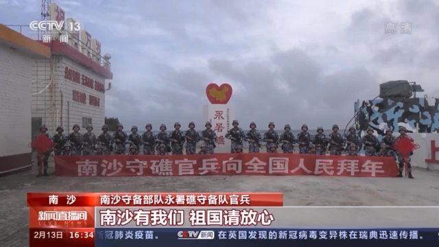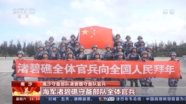 南沙守备部队渚碧礁守备队官兵:海军渚碧礁守备部队全体官兵向全国人民拜年,英勇善战,建功海洋!