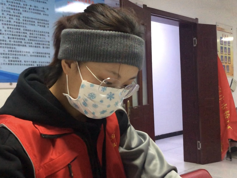 图为疫情期间,雷妮娜在石家庄市桥西区丰河苑社区当志愿者。受访者供图