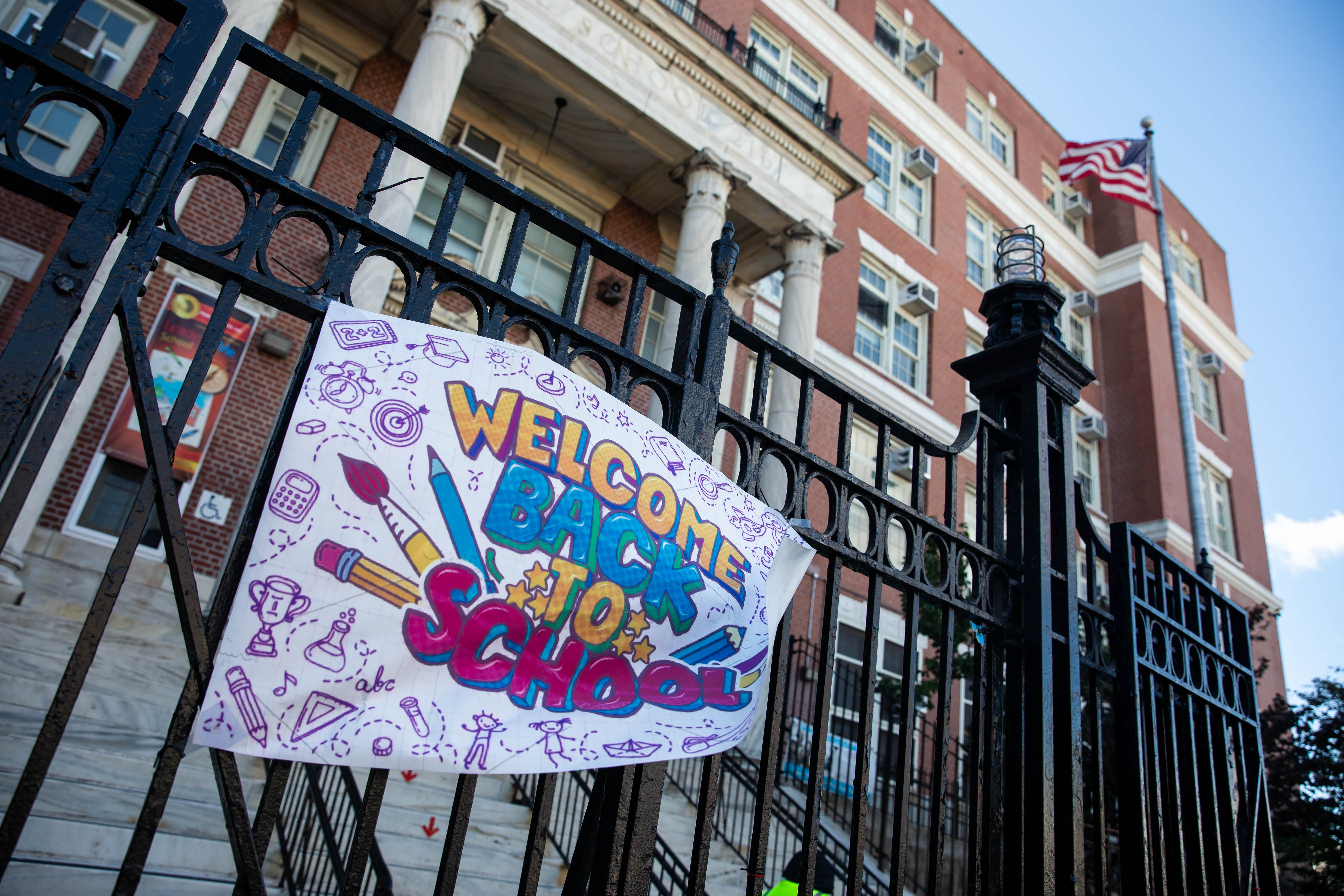 这是2020年10月8日在美国纽约布鲁克林区拍摄的一所因疫情关闭的学校。新华社发(郭克摄)
