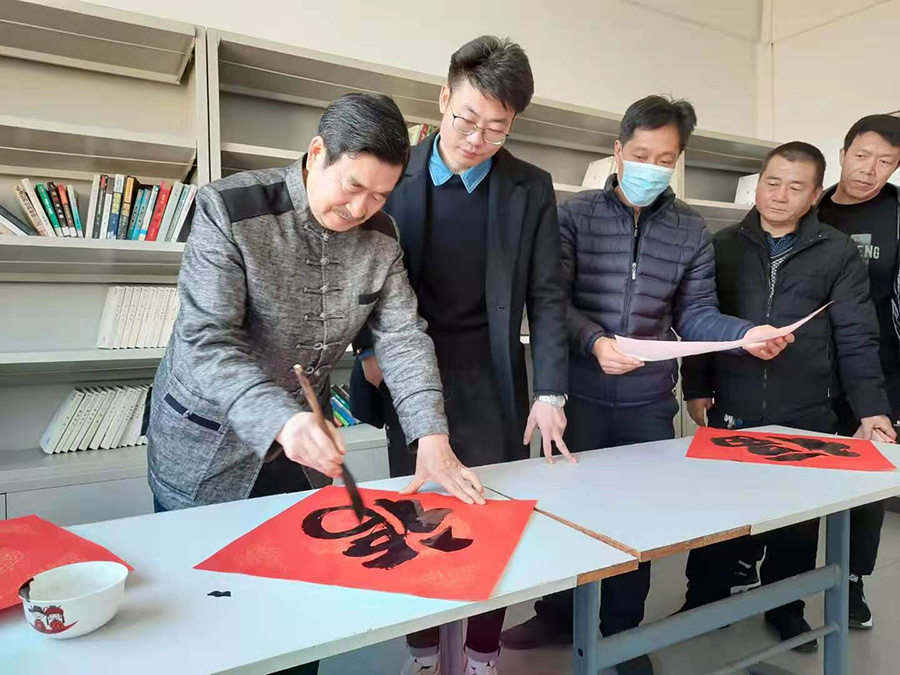 2月7日,唐山当地书法家来到开滦集团和员工们互动写“福”字。(图片由开滦集团提供)