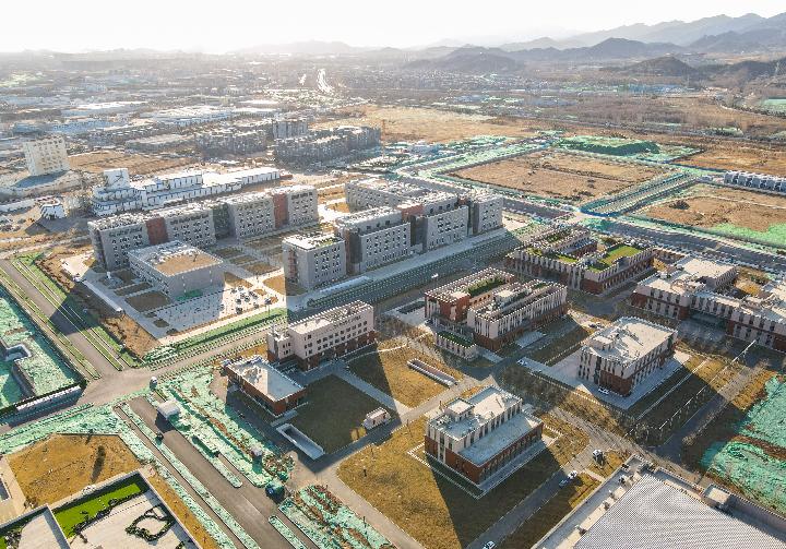 这是无人机拍摄的怀柔科学城中国科学院物理所怀柔园区全景,2020年10月30日,该园区正式启用。(新华社记者 陈钟昊 2月3日摄)