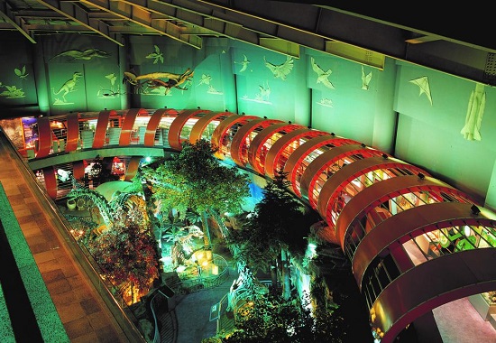 馆内设地球厅、恐龙厅、生物演化厅、古象厅、矿产资源厅、生态厅、矿物厅等七个常设展厅,参观者可通过4D动感影院,身临其境般感受虚拟地震、海啸等现象。馆外分布着矿石林、科普广场、恐龙雕塑等。