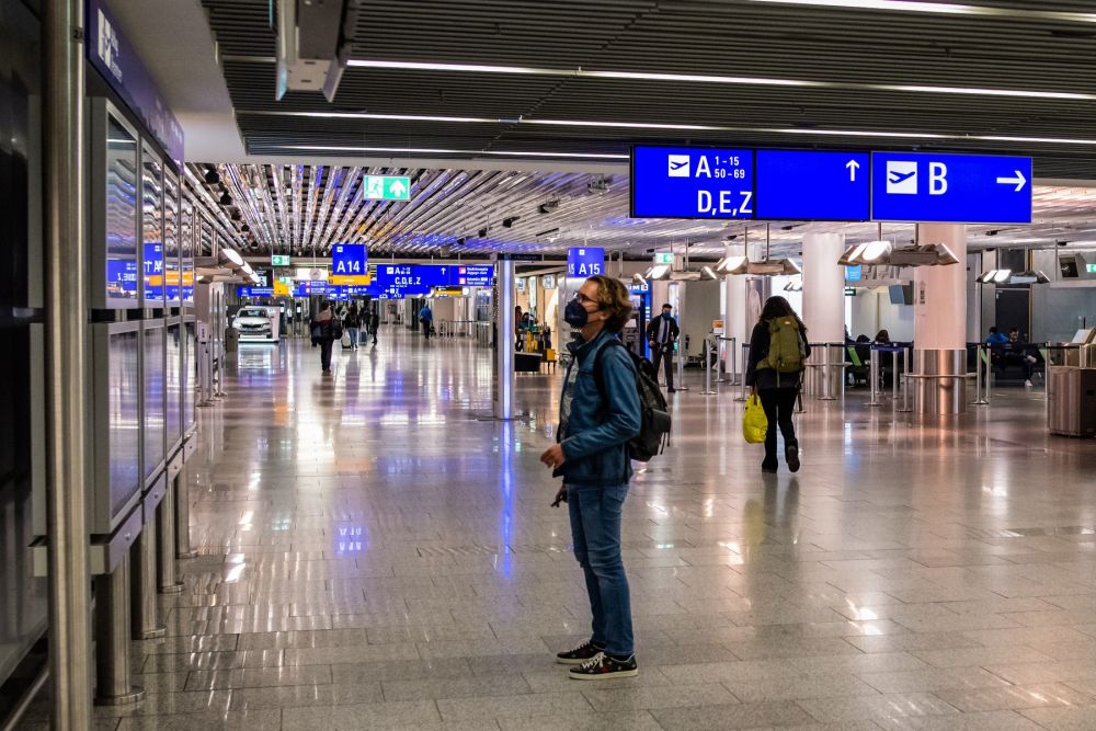 2020年11月23日,一名男子在德国法兰克福机场查看航班信息。(新华社发,凯文·福格特摄)