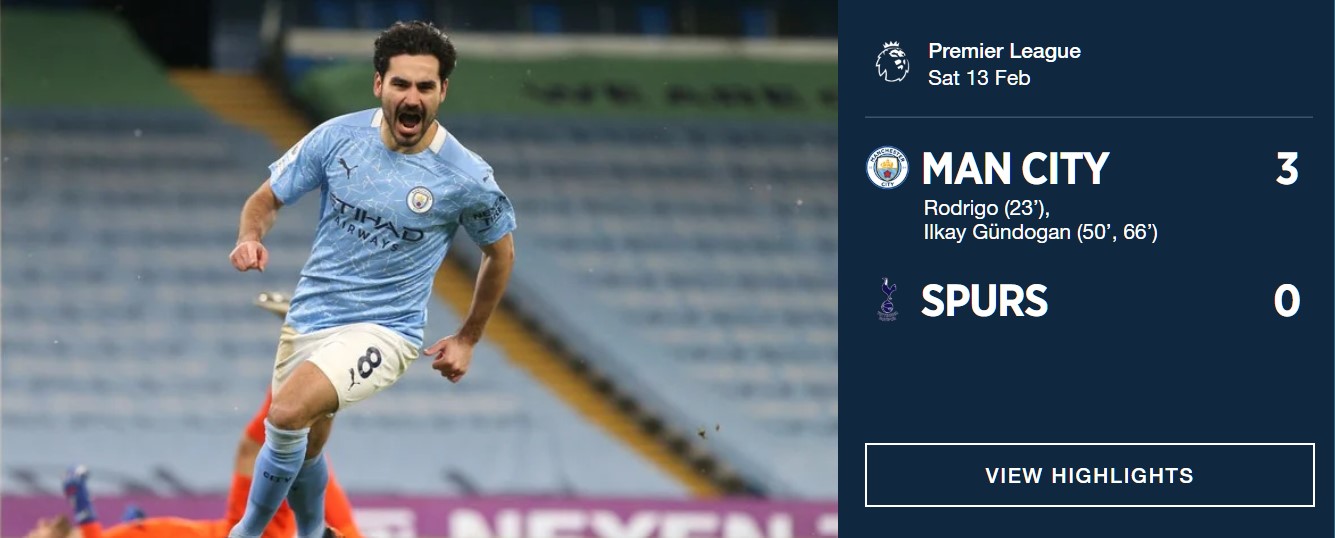 曼城同日主场迎战热刺,德国中场京多安大放异彩。上半场,他创造点球机会,罗德里主罚命中。下半场,他又连中两元,为曼城确立3球领先的优势。虽然京多安随后因伤提前下场,但曼城将3:0的比分保持到终场。