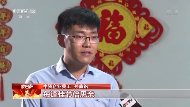 中资企业员工 孙鑫铭:每逢佳节倍思亲,现在正值大年初一,我们坚守在海外一线,离祖国、离国内的亲属有九千多公里的距离。但是我觉得,距离并不能改变我们对他们的思念,向我们祖国问候新年好!向我们这些一线员工在国内的家属,道一声你们辛苦了!