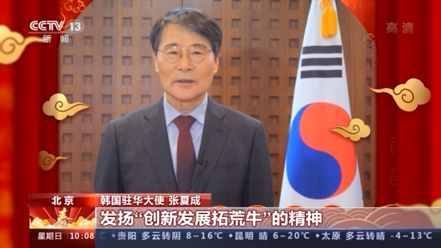 韩国驻华大使 张夏成: 2022年是韩中建交30周年,两国关系面临深化发展新机遇。我期待继续推进音乐、电视剧、电影、旅游等文化领域的合作,深化两国人民之间的友谊。2021年是农历牛年,中国人强调“三牛精神”,我希望新的一年里韩中关系的发展能发扬创新发展拓荒牛的精神,我和韩国大使馆的所有员工,将尽我们全力推动韩中关系的发展。