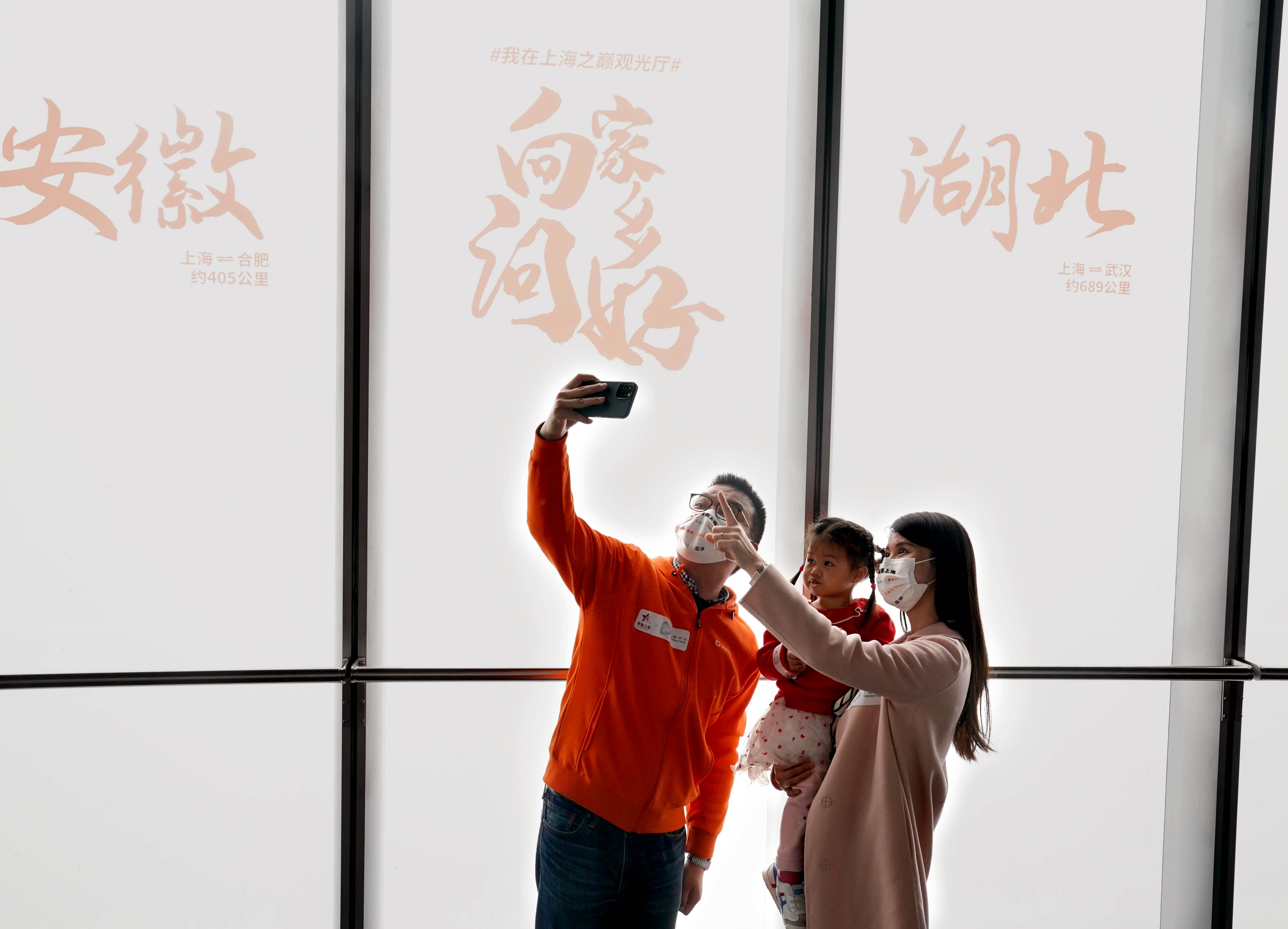 (2月12日,来自湖北、留沪过年的韩姣和丈夫、女儿一起,与亲人视频连线拜年。新华社记者 刘颖 摄)