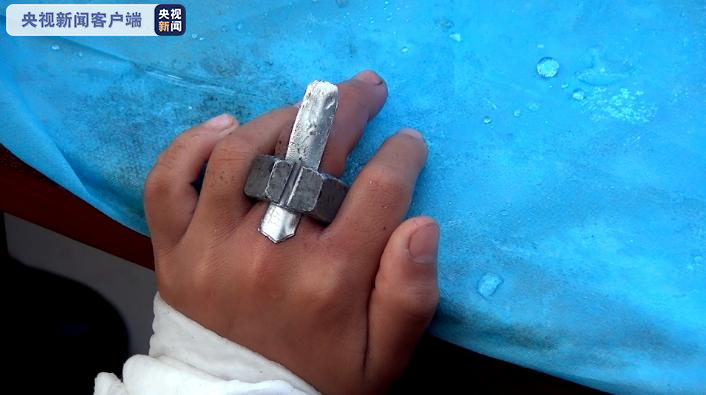 14时23分,救援人员到达现场后,经询问小孩父亲得知,一个硬钢材质螺帽死死套在男孩左手中指根部,时间长达3个小时,且已经出现肿胀,本想求助医生快速消肿后,将螺帽取下,可到达医院后,医生也无法有效处理。由于该钢材质螺帽宽度大概2.6厘米,厚度约0.7厘米,手指已经肿胀严重,依靠物理方法无法摘除,消防人员只能对螺帽进行切割破拆。