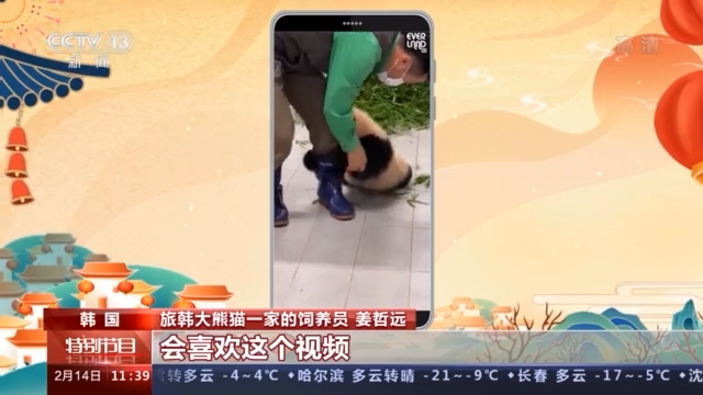 旅韩大熊猫一家的饲养员 姜哲远: 我没有想到有这么多的人会喜欢这个视频,但是看到那么多点赞数,我突然意识到原来这一年大家都过得很辛苦,这个视频能够为大家提供力量,治愈大家的辛苦,我作为福宝的爷爷也感觉很幸福,说到我的新年愿望,现在因为疫情需要保持距离,想要亲眼看到福宝的观众很多,但是却没有机会直接看到,我希望新的一年里疫情尽快结束, 能让福宝和大家见面!