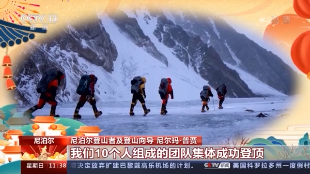 尼泊尔登山者及登山向导 尼尔玛·普贾:不久前挑战冬季攀登K2峰(乔戈里峰),我们10个人组成的团队集体成功登顶 ,新的一年希望能在这里重聚,到时候这里会有很多来自中国的山友。我还会当珠峰向导,也会为其他登山项目做向导,很想和跟你们在雪山再相聚,春节快乐!