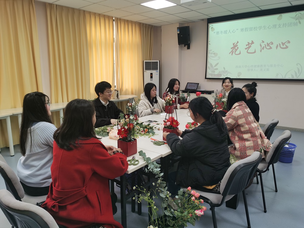 留校大学生们在开展花艺心理团辅活动(西南大学学工部供图)