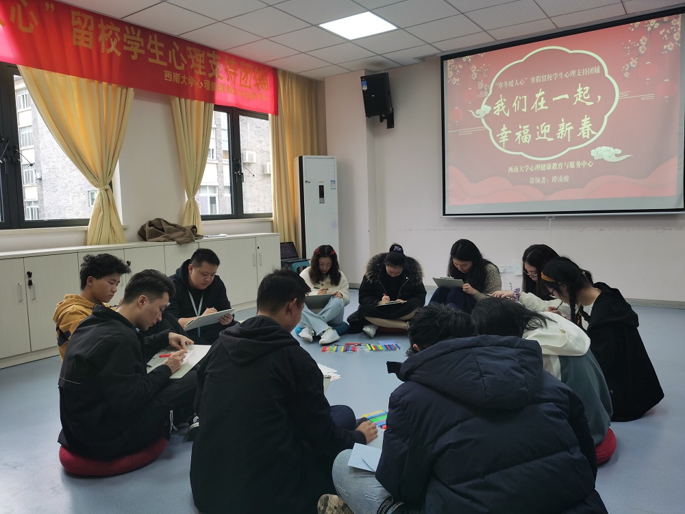 据了解,2020年疫情发生以来,西南大学心理健康教育与服务中心就面向全校师生开设了24小时心理咨询热线,调节师生焦虑情绪。心理团辅也成为常态化活动,受到大学生们的喜爱。今年寒假留校过年的300多名学生中,有200多人次参加了心理团辅活动。