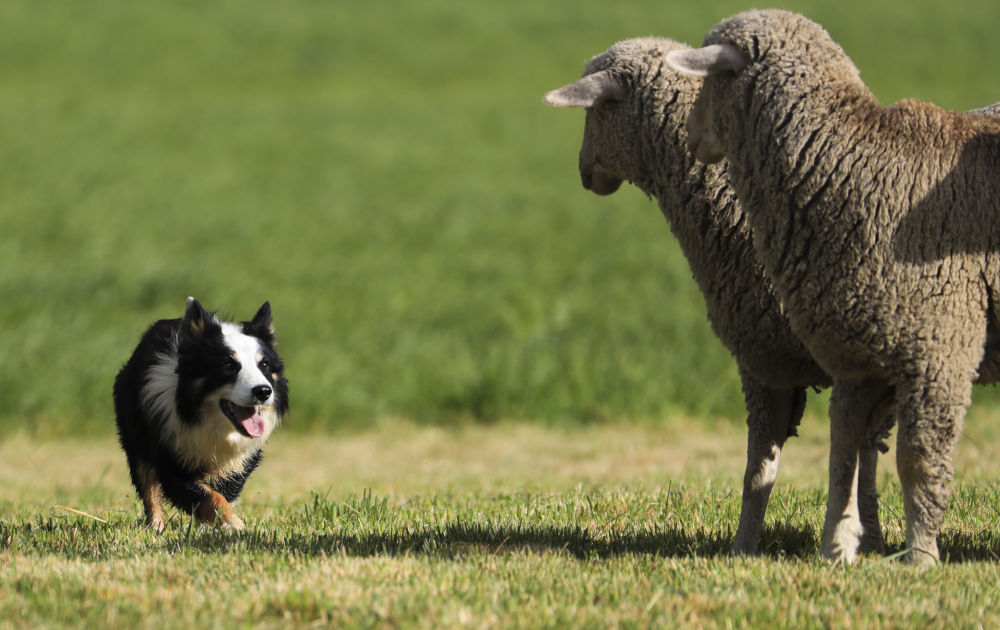 2019年9月11日,在美国卡本代尔,一只牧羊犬在牧羊犬大赛比赛中注视羊群动向。(新华社记者李颖摄)