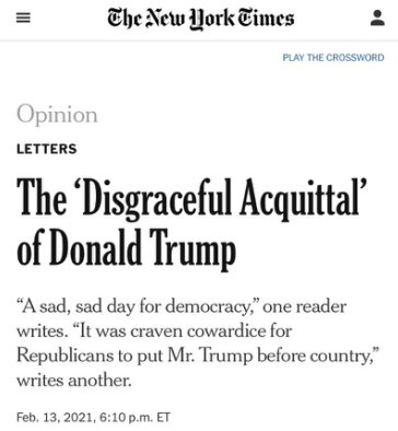 △《纽约时报》评论:特朗普“可耻的宣判无罪”