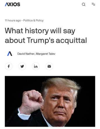 此案判决开创了美国历史弹劾已卸任总统的先例。尽管特朗普律师团队的很多证词缺乏事实依据,其针对民主党人借法律武器实施政治报复的指责却不无道理。