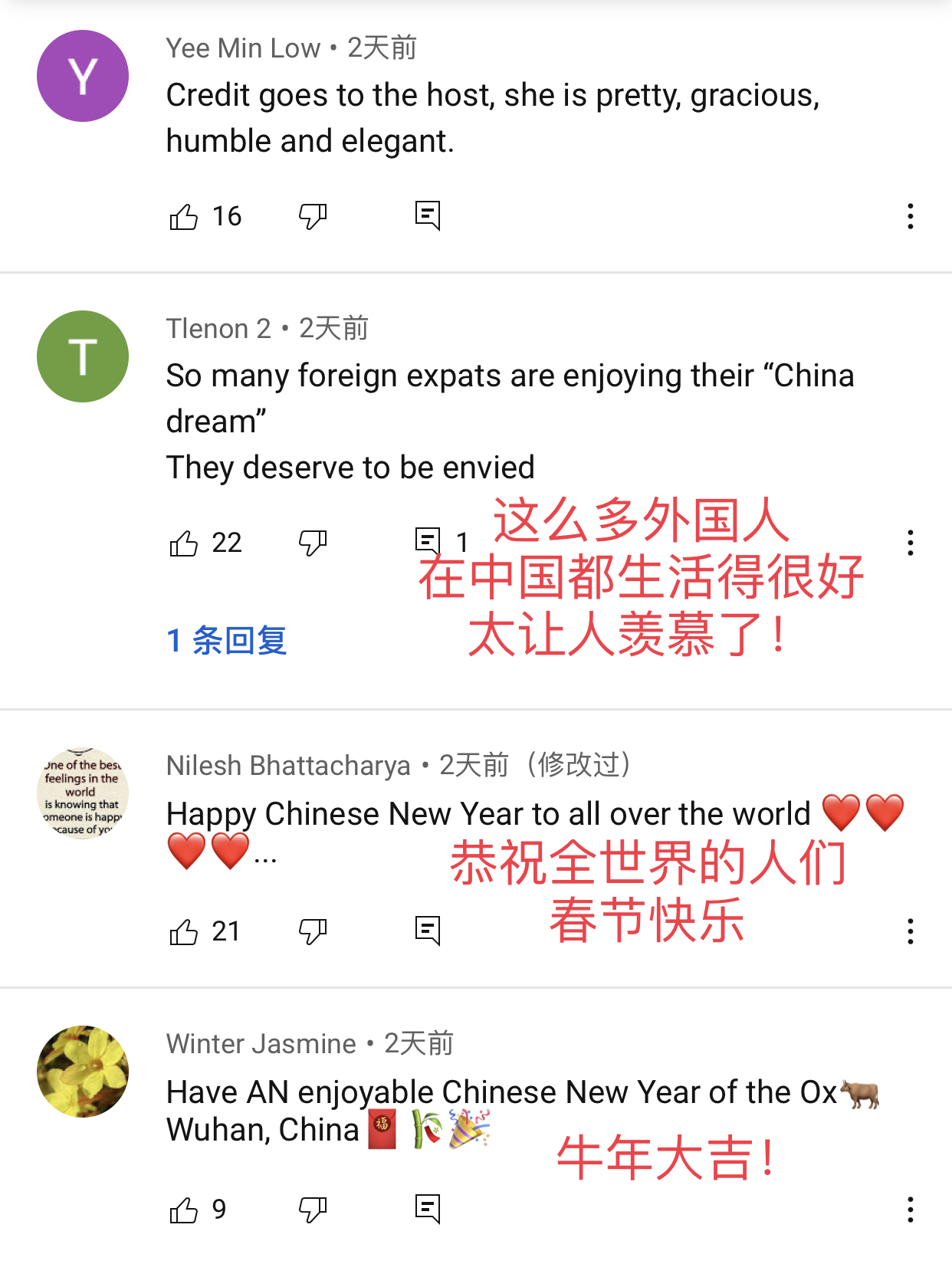 纷纷感谢在中国的老外们