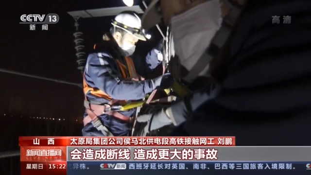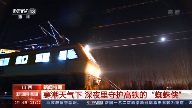 昨天(2月13日)上午,山西省气象台发布寒潮蓝色预警,全省大部区域迎来大风降温天气。然而,在大西高铁山西段,有这样一群人还在冒着严寒通宵作业,他们置身高空,对高铁接触网进行巡视检修、排除险情,他们就是高铁接触网工。为确保高铁运行安全,春节期间,他们也依然坚守岗位。