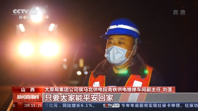 太原局集团公司侯马北供电段高铁供电维修车间副主任 刘蓬:冷是冷,冻是冻,只要大家能平安回家,这就是我们最大的心愿。