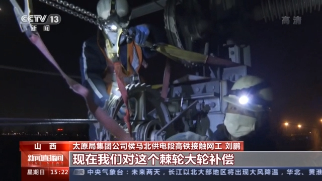 太原局集团公司侯马北供电段高铁接触网工 刘鹏:我们现在利用天窗作业,现在我们对这个棘轮大轮补偿已经更换完毕了。