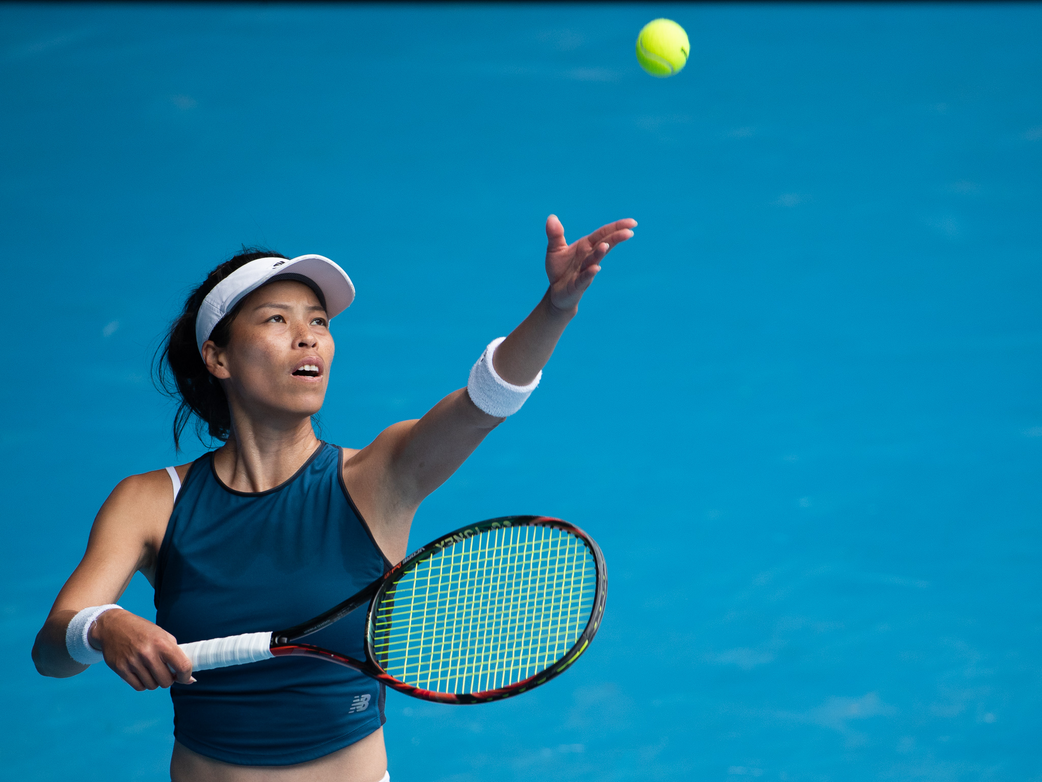 谢淑薇在比赛中发球。新华社发(胡泾辰摄)