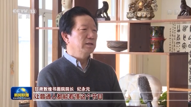 甘肃敦煌书画院院长 纪永元:这个节目采用了现代科技手段,让人有穿越历史时空的感觉。这种深入浅出,让普通人都能看懂这个节目,都能领略经典里面的文化精华。